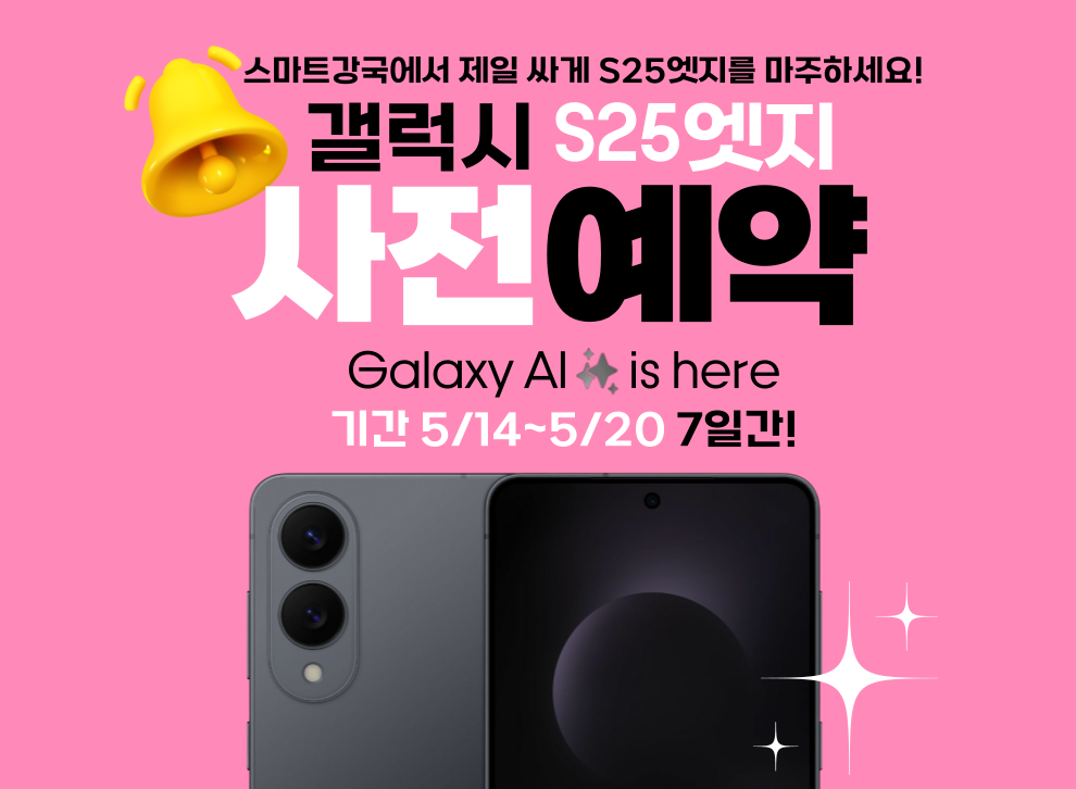 스마트강국에서 갤럭시 S25엣지 사전예약을 7일 동안만 진행합니다!